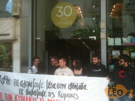 Οι εργαζόμενοι, μέλη του σωματείου υπαλλήλων βιβλίου-χάρτου πραγματοποίησαν κινητοποίηση έξω από κεντρικό βιβλιοπωλείο της Θεσσαλονίκης, ενημερώνοντας τον κόσμο για τα προβλήματα που αντιμετωπίζουν στον κλάδο τους.